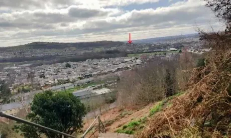 So my day started with a walk across the Aire Valley, north of Bradford. Crossing from my current home (marked approximately with the red arrow) to my birthplace. In fact, for a good part of my life 50 to 60 years ago, I played around the valley cliff in the foreground. Made especially interesting with old Yorkshire stone quarry workings.