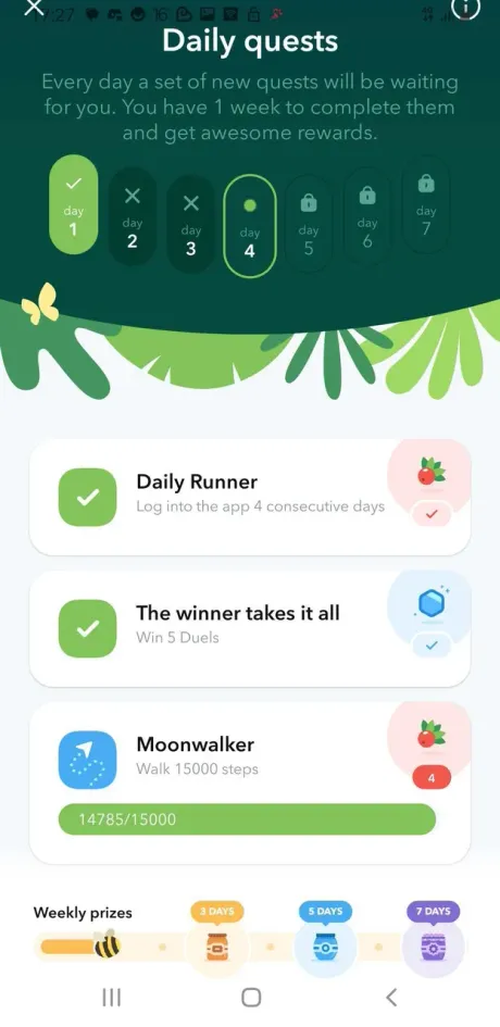 Additionally, it gives rewards when you complete all the daily quests in 3, 5, and all 7 days each week.